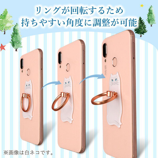 スペック* 長さ: 収納時: 約(W)36×(D)8.3×(H)63mm (リング部含む)* セット内容: フィンガーリング×1、吸着強化フィルム×1、交換用両面テープ×2* 材質: ポリカーボネート、亜鉛合金(吸着面: アクリル系粘着)* カラー: 黒ネコ* 生産国: 中国