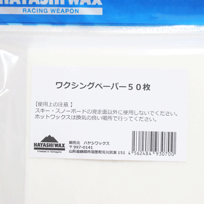 【HAYASHI WAX ハヤシワックス】ワクシングペーパー50枚入り( スノーボード メンテナンス チューンナップ ワックス 仕上げ ワックスペーパー marason)